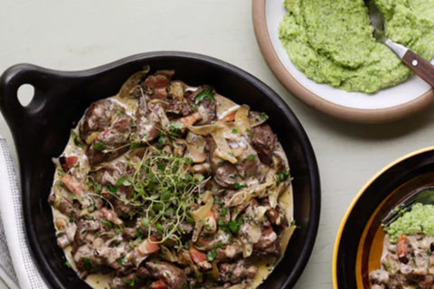 Chicken liver in mushroom sauce & broccoli mash