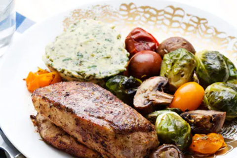 Keto chicken with roasted vegetables tricolor
